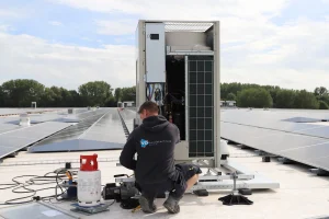 Tijd voor de montage. Werkvoorbereiders, projectleiders en monteurs werken nauw samen aan jouw klimaat- of koeloplossing. Met heldere communicatie zorgen we dat alles soepel verloopt en perfect op elkaar aansluit.