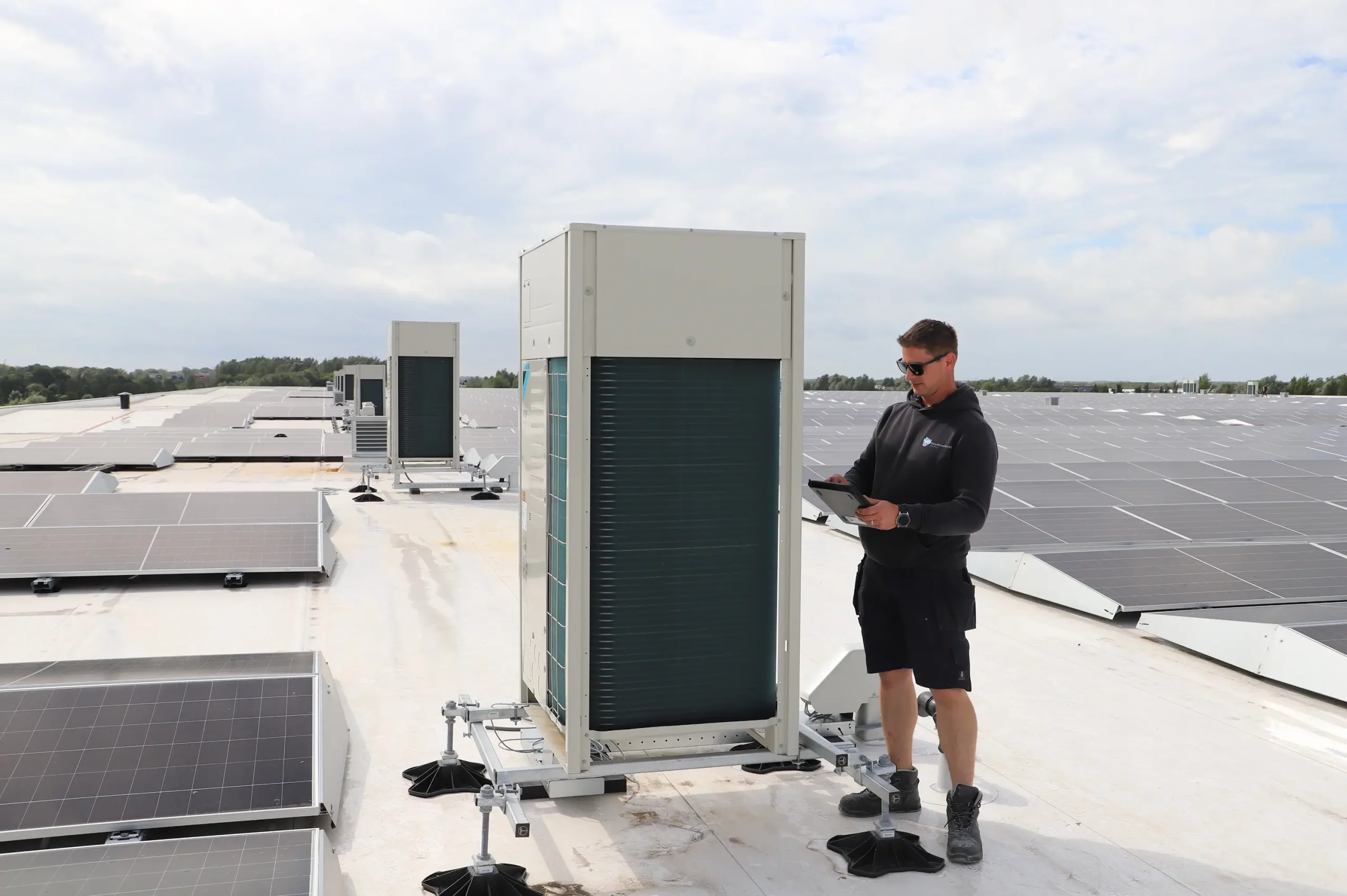 Tijd voor de montage. Werkvoorbereiders, projectleiders en monteurs werken nauw samen aan jouw klimaat- of koeloplossing. Met heldere communicatie zorgen we dat alles soepel verloopt en perfect op elkaar aansluit.