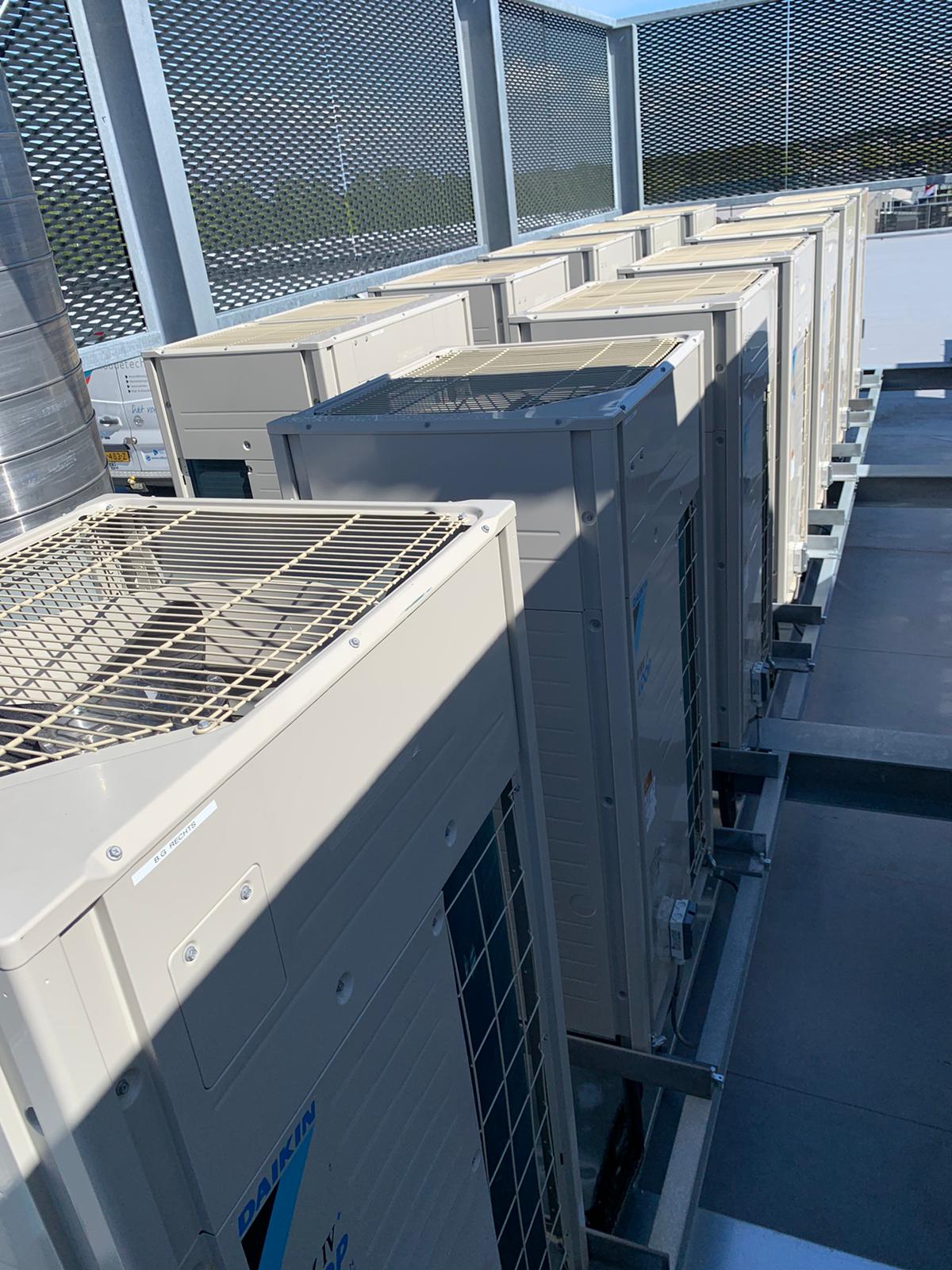 We leverden en installeerden zes Daikin VRV Heat Recovery-systemen, goed voor ruim 60 binnendelen verspreid over de nieuwbouw. Voor onder andere de serverruimte realiseerden we extra split-units met redundantie. Ook de showroom kreeg een eigen, efficiënte oplossing met Inverter warmtepompen.