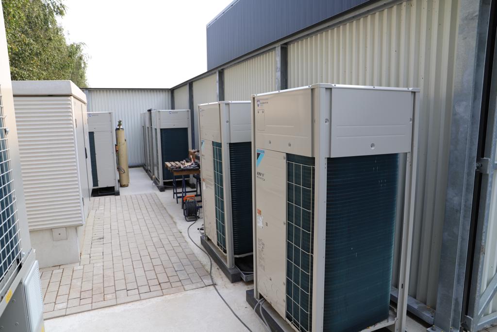 Een luchtbehandelingskast van 15.000 m³/h met hoogrendement warmteterugwinning voorziet het kantoor van frisse lucht. Daarnaast installeerden we drie sets van drie gekoppelde VRV Heat Recovery-systemen die zorgen voor efficiënte verwarming en koeling in alle vertrekken. De serverruimte kreeg een eigen split-systeem.